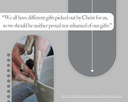 -We all have different gifts picked out by Christ for us, so we should be neither proud nor ashamed of our gifts.