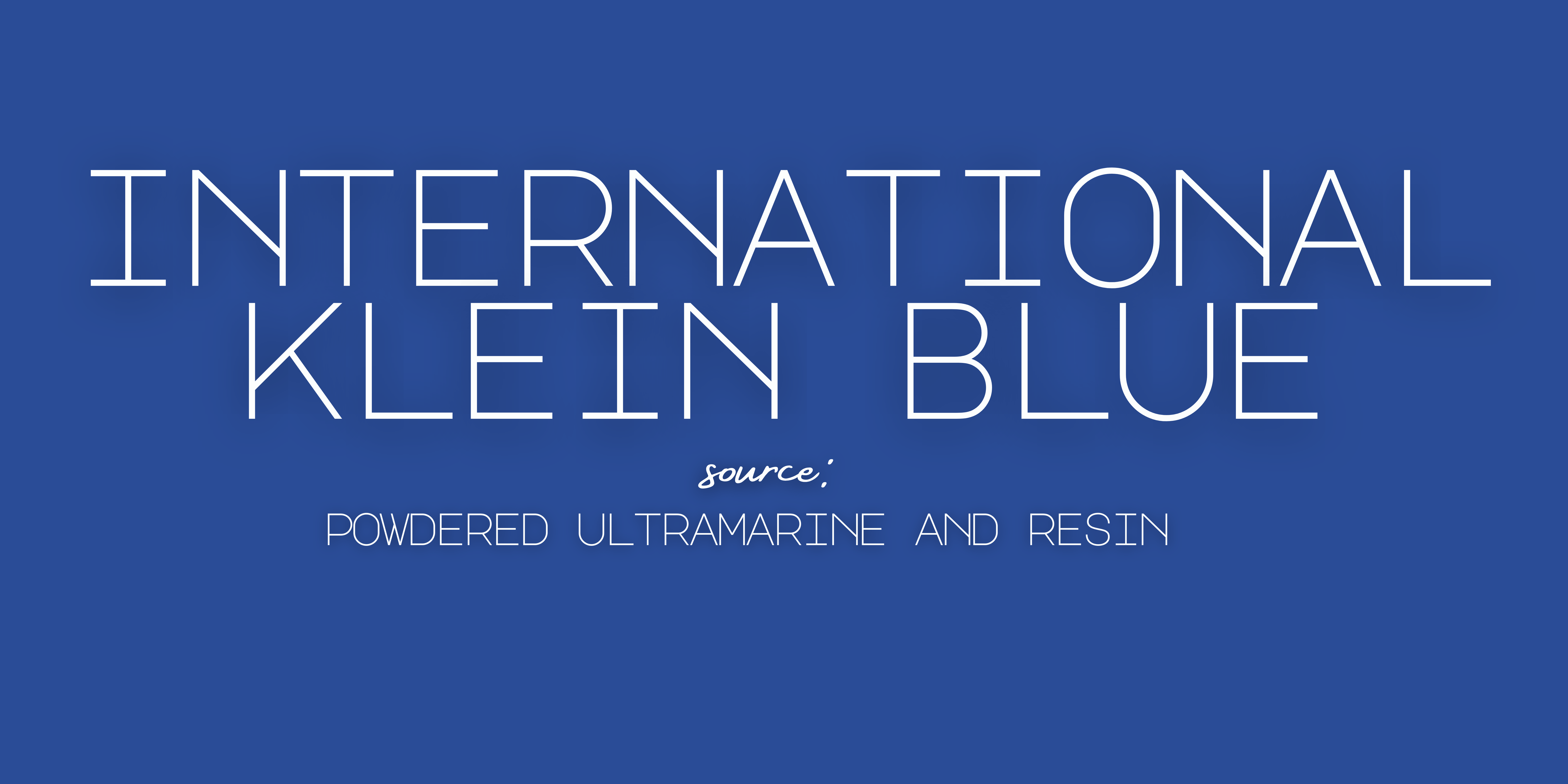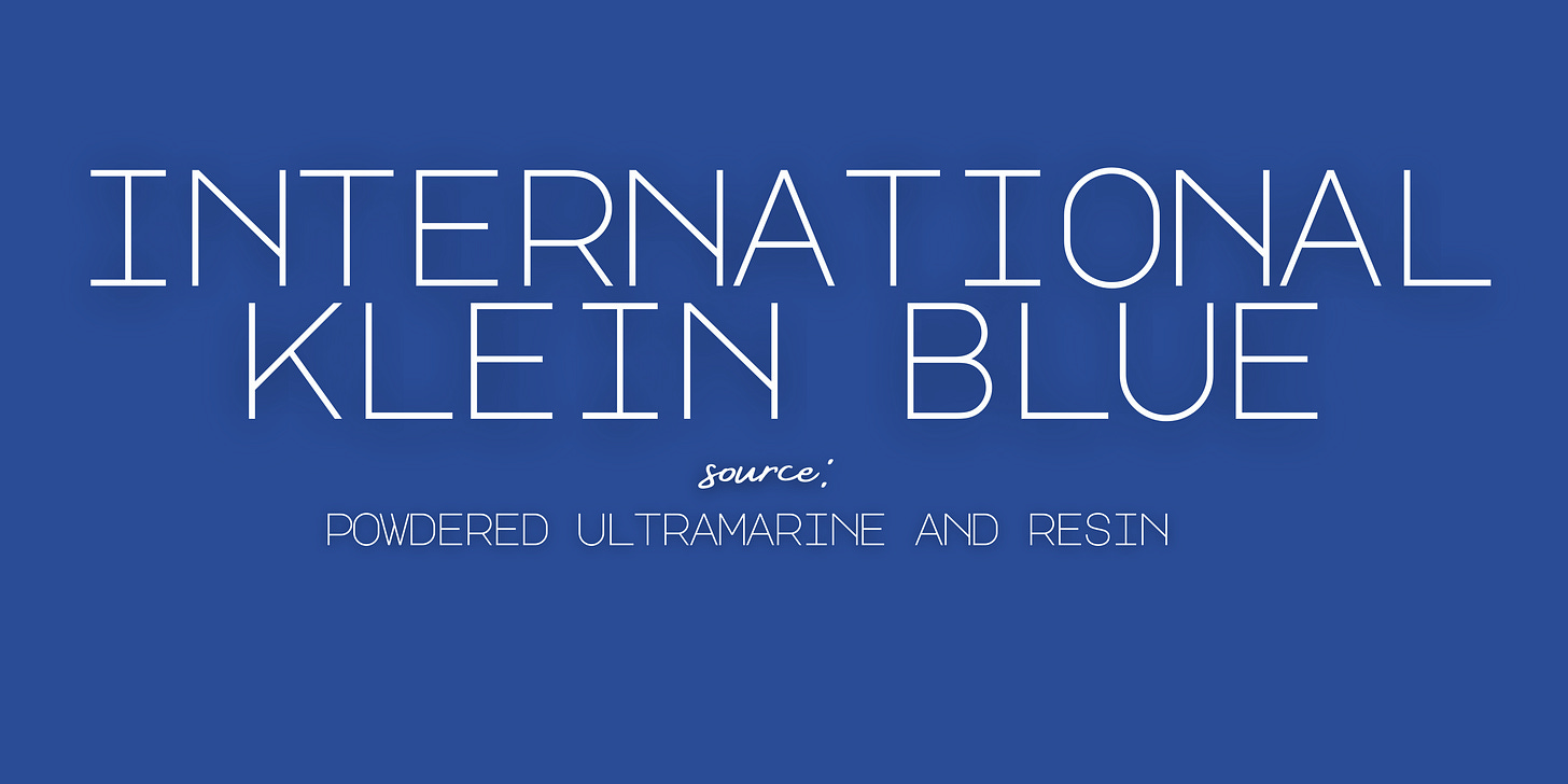 The IKB... this was a color "invented" and patented by the esoteric artist Yves Klein, who then went on to paint it on canvases, found objects, and people. He made it with powdered ultramarine and resin and considered it to be the best blue. He believed one could achieve transcendentalist "freedom" through painting and certain colors. Many of his works were monochrome with his trademark blue.